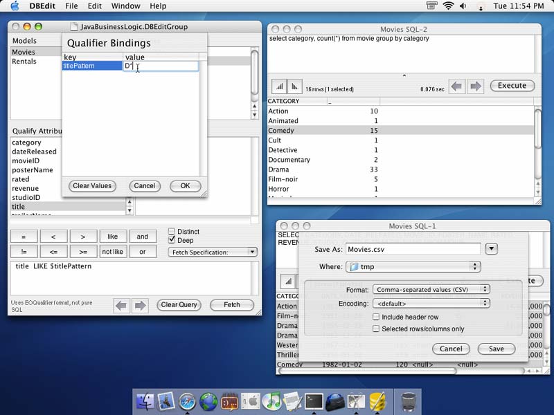 DBEdit is a tool for database exploration and editing based on information in EOModel files. Fetches can be